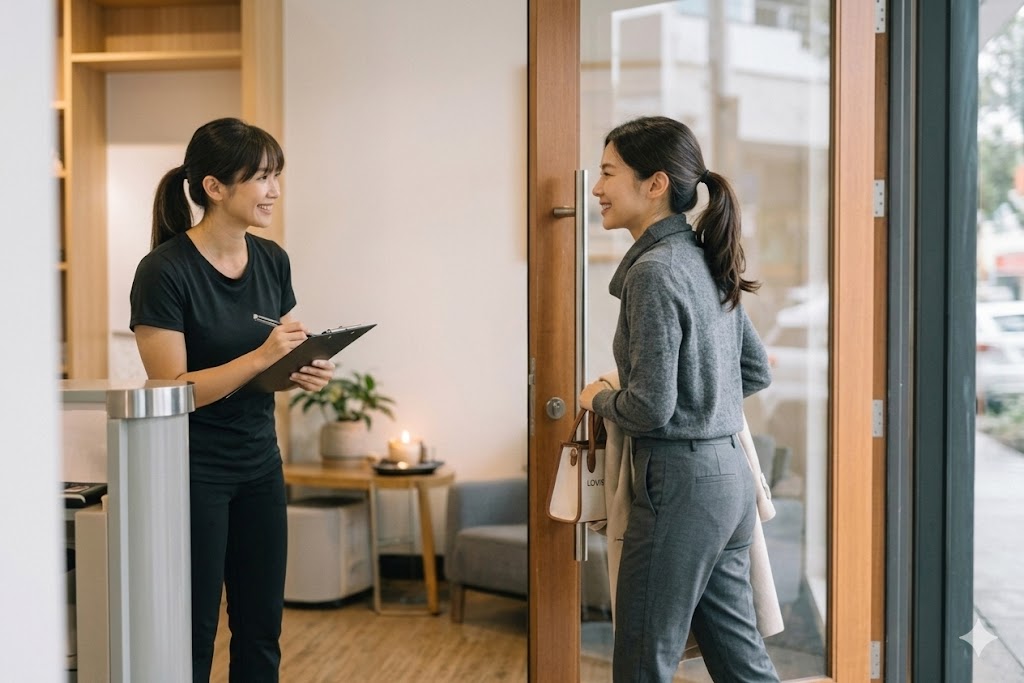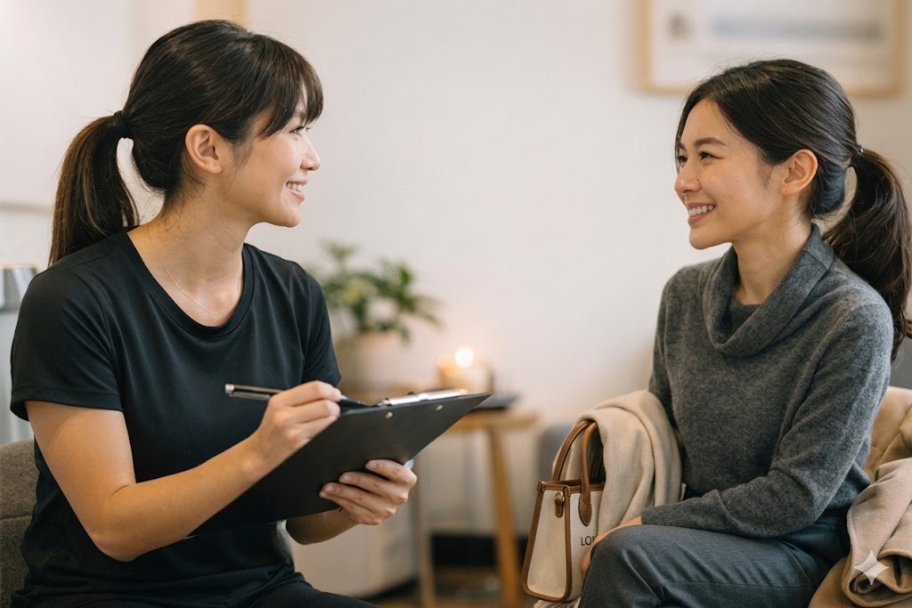 実質60分(お着替え・カウンセリング・30分のセッション)のご滞在に対し、ご予約枠を「90分」と贅沢に確保しています。