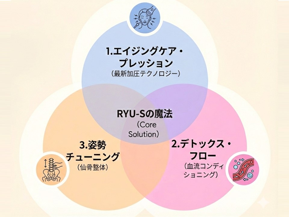 Recovery Fitness RYU-S(リカバリーフィットネスリューズ)では、以下の3つのプログラムを組み合わせ、あなたのQOLと美を最大化します。