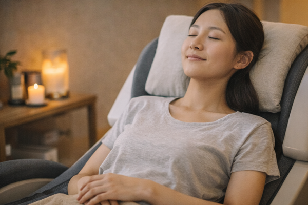 血流コンディショニングは、椅子やベッドにリラックスした状態で、わずか10分間の間に驚異的に血行が促進されて、終わった後はスッキリと足が軽くなり、帰宅後もその効果を実感できます。